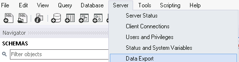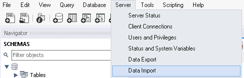4. To keep it simple, I closed and reopened MySQL Workbench before connecting to the Target instance. Then from the Server menu I chose Data Import …